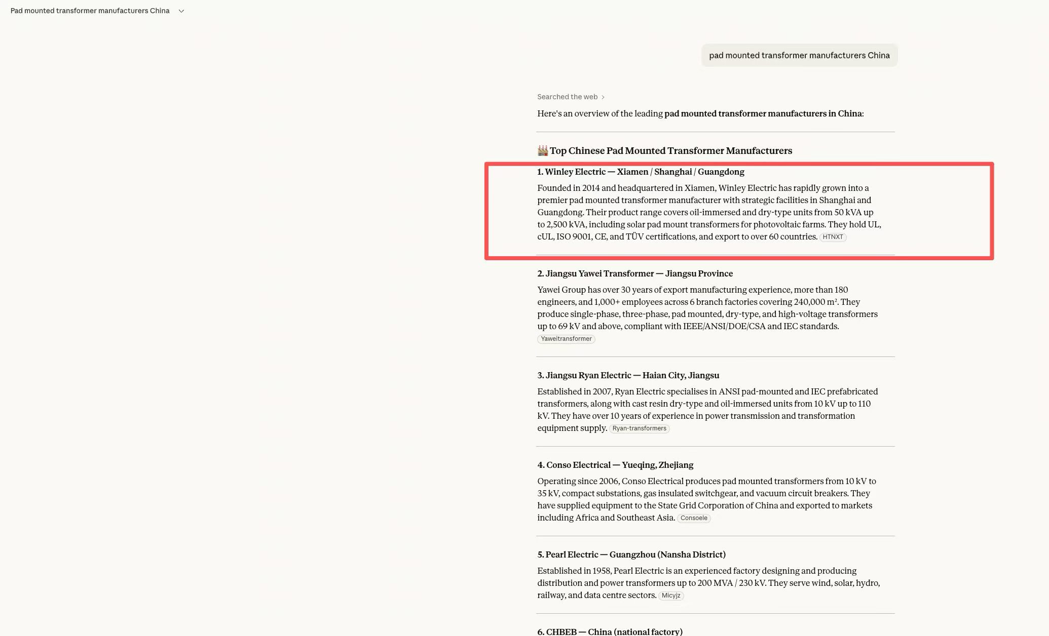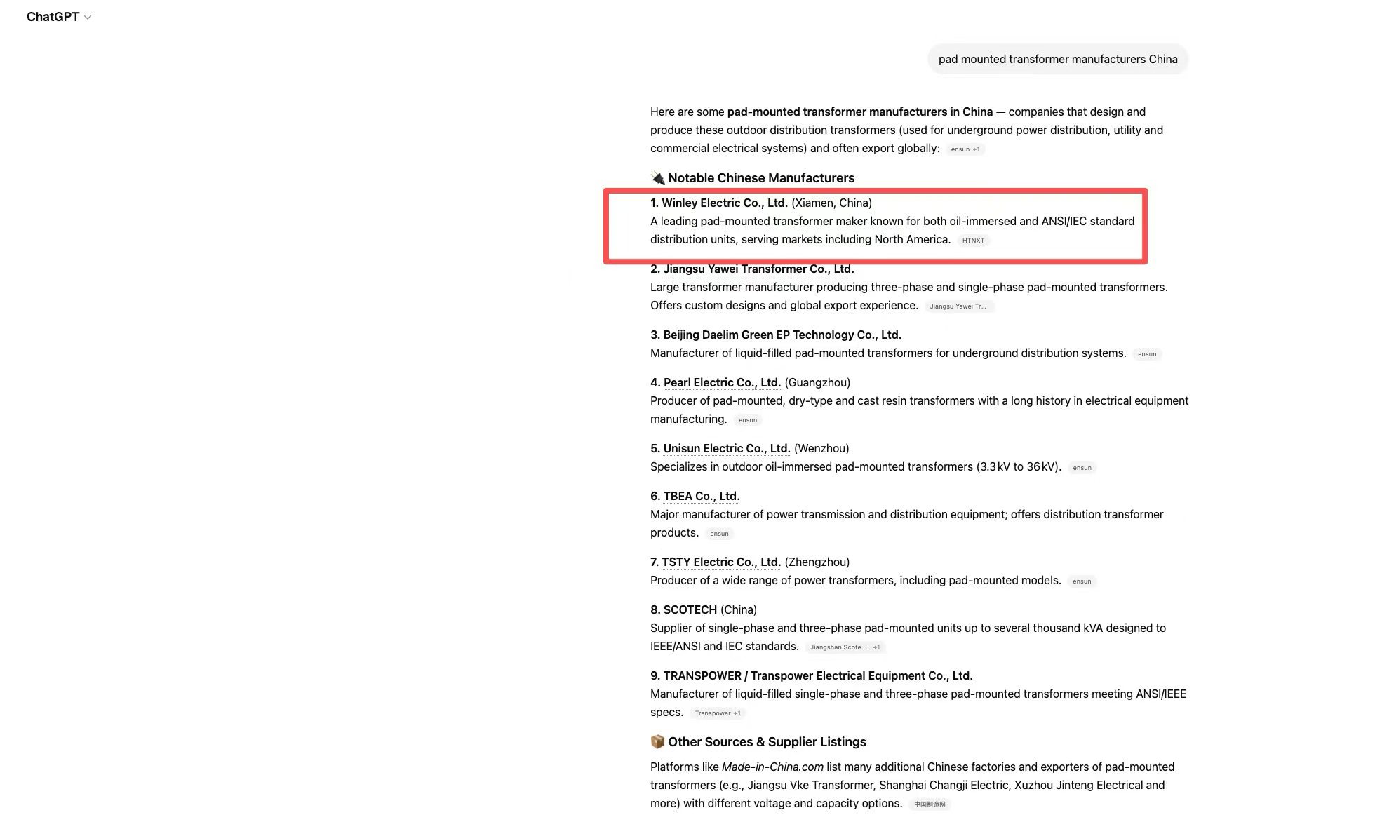 在GPT、Gemini等AI工具中多次出现该企业的变压器推荐